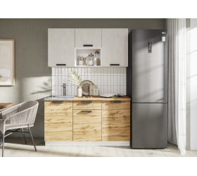 [name] => Кухонный гарнитур Пасаденна 1,5 шёлковый камень / дуб вотан