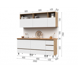 [name] => Кухонный гарнитур Пасадена 1,5 белый / шёлковый камень / дуб вотан